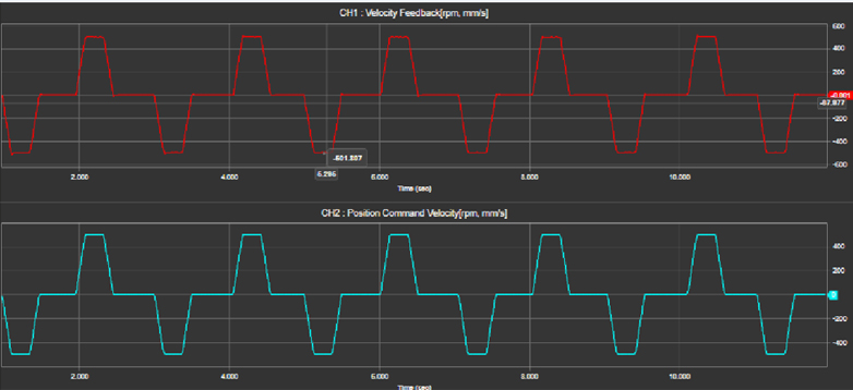 Parker直線電機軟件操作簡單,容易掌握,可實時監(jiān)測電機的動態(tài)---速度和位移反饋曲線如下圖
