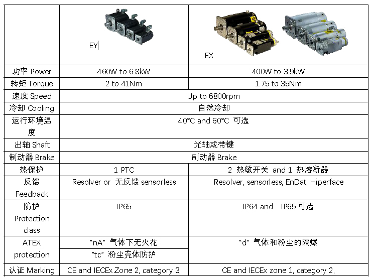 二、派克防爆伺服電機(jī)EX 、EY參數(shù)對比: